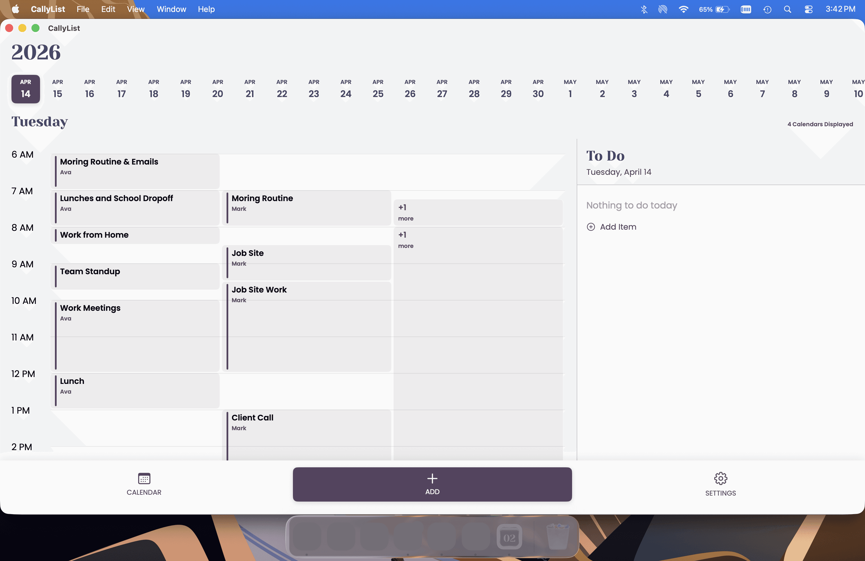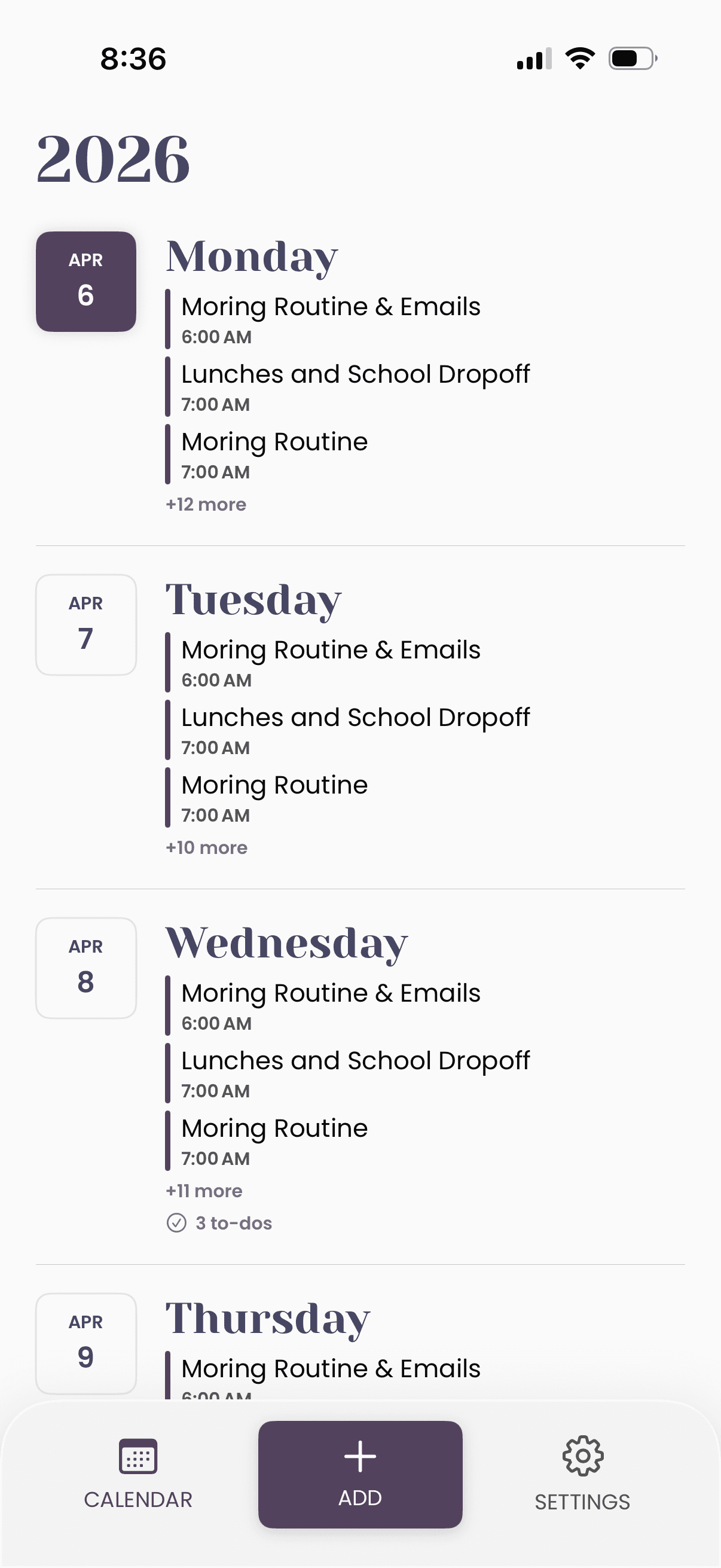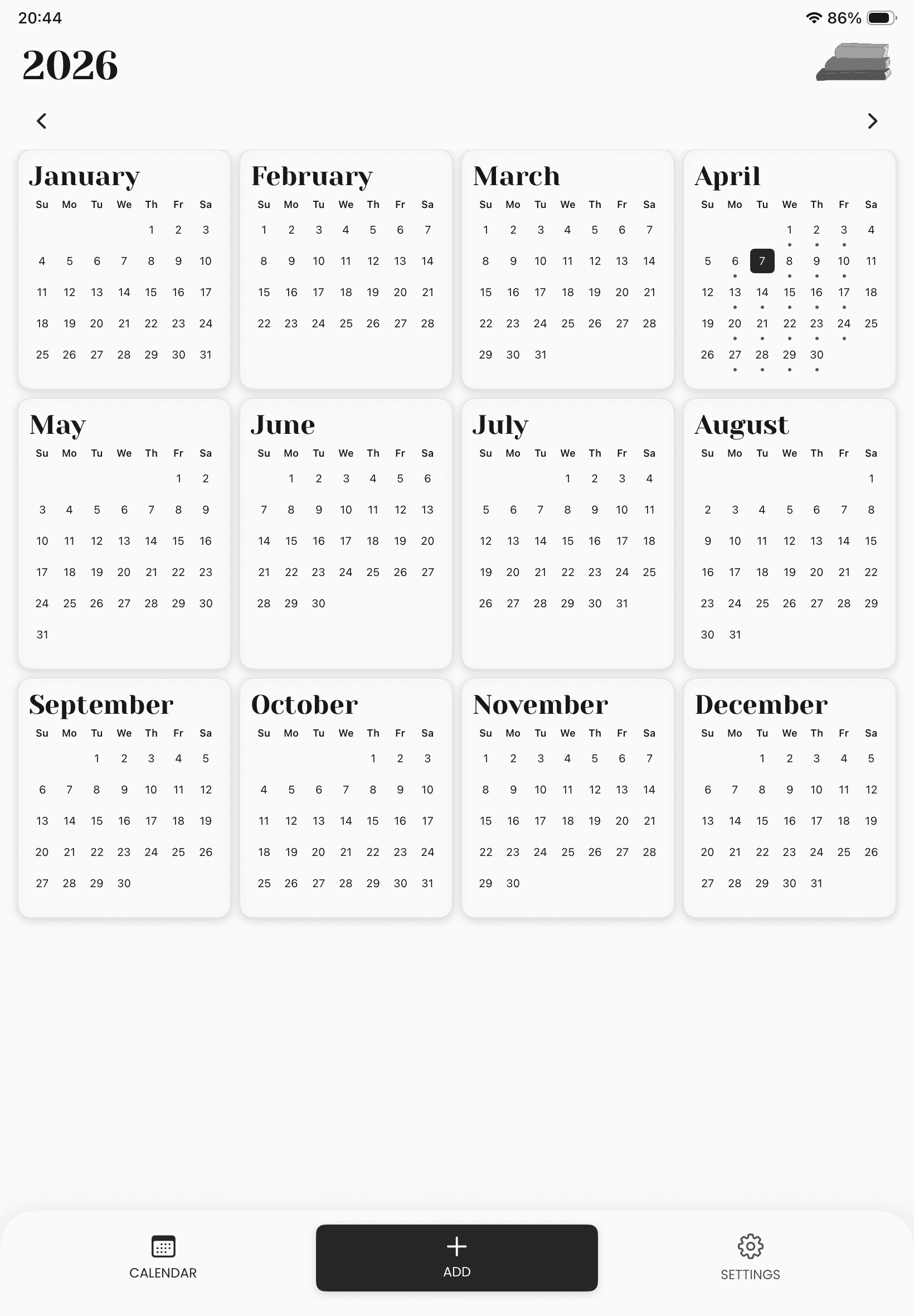 Switch effortlessly between Daily, Weekly, Monthly, and Yearly views. Whether you're planning today or scanning the whole year, CallyList gives you the right lens for every moment.